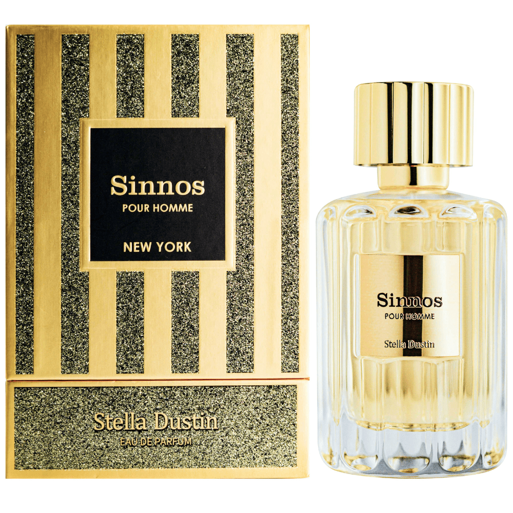 Stella Dustin Sinnos Pour Homme despliega una composición masculina contemporánea con bergamota y especias en la apertura. El corazón combina notas aromáticas y amaderadas, mientras la base de maderas secas y almizcle crea una fragancia sofisticada que define la elegancia masculina moderna.